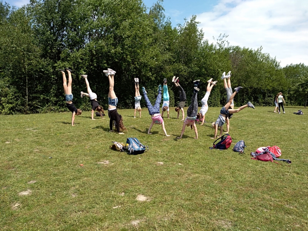 hatten die Turnerinnen de/s Jahrgangs 06/07 und die Turnerinnen des Jahrgangs 04/05 morgens ihren Wettkampf. Mittags haben wir uns das Gelände der Schule und die weiteren Wettkämpfe angeschaut. Außerdem haben wir uns für den Schauwettkampf und das Pizzaessen fertig gemacht.