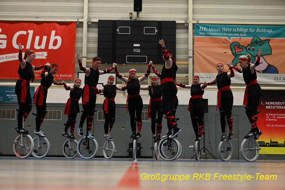 Ein Highlight für das Publikum sind zum Abschluss einer solchen Meisterschaft stets die Großgruppenküren. Alle fünf Teilnehmer des SSV Nümbrecht gingen hier im RKB Freestyle Team mit der Kür „Ninja“ an den Start. Mit einer guten Präsentation wurde das Team von der Jury auf den 5. Platz gewertet.